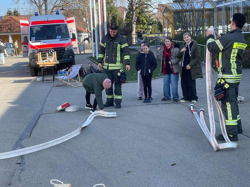 sollte. Das Ergebnis war für die Kinder sehr überraschend, denn auf der Plane war genug Platz für eine ganze Klasse. Die Kinder hatten bei der Aktion sichtlich Spaß und können sich die Gefahren beim