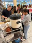 Beliebt waren der Verkauf selbstgebastelter Marionetten und bunter Fächer sowie die abwechslungsreichen Aufführungen auf der Bühne im Pausenhof. Für viele