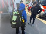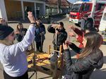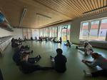Zum Schluss verteilten sich die Schülerinnen und Schüler auf einer Plane, die den toten Winkel rechts neben dem Fahrerhaus simulieren